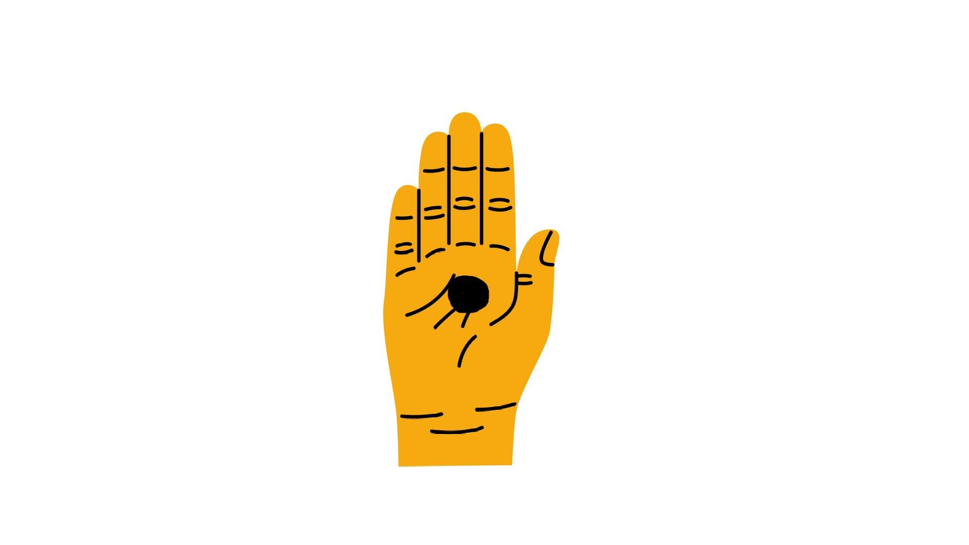 На ладони рисуется черный кружок маркером или ручкой. Сигнал появился как тихий способ привлечь внимание людей, которые могут оказать поддержку. Узнав его, окружающие могут осторожно поинтересоваться у человека, все ли в порядке и нужна ли помощь.