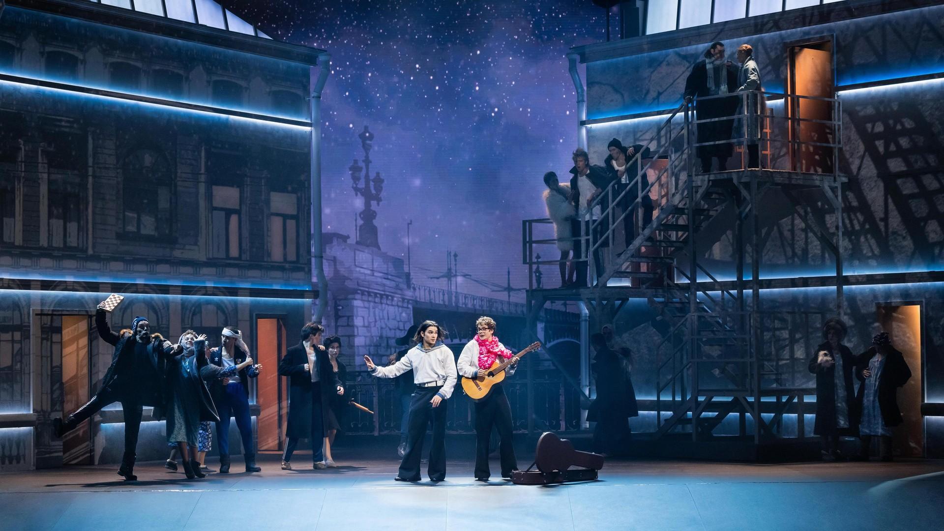 Это история о любви, дружбе и выборе, который определяет судьбу: следовать ожиданиям или оставаться верным себе. На сцене оживает узнаваемый любимый Петербург с его романтическими крышами, дворами-колодцами, разводными мостами и Невским проспектом, над которым в звездное небо взмывает знаменитый троллейбус с номером «1983» — как символ того, что настоящая любовь неподвластна гравитации. Легендарные хиты группы «Секрет» в исполнении героев мюзикла снова звучат как голос бесстрашной молодости.