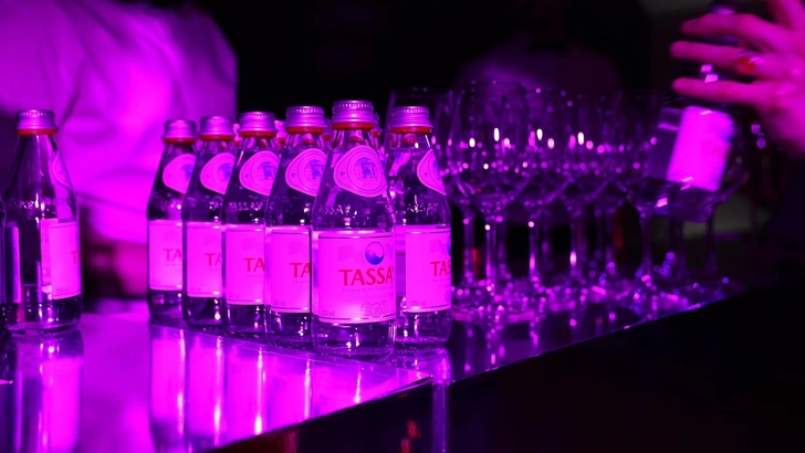 Во время вечера приглашенные могли насладиться изысканным кейтерингом и утолить жажду питьевой водой Tassay с уникальным легким минеральным составом с западного предгорья Тянь-Шаня.