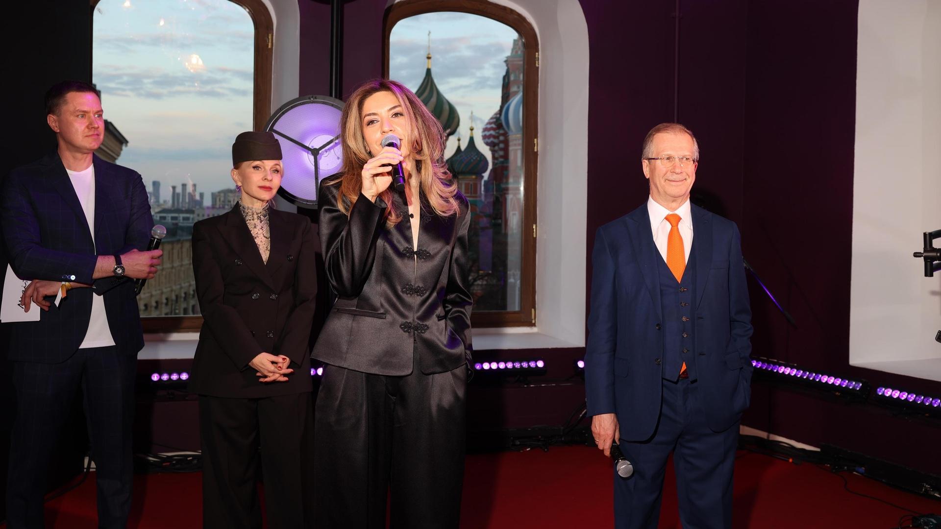 Мероприятие началось в люксовом пространстве BoscoCasa, а основная часть вечера прошла в зале на верхнем этаже ГУМа, откуда открывался потрясающий вид на Красную площадь, Кремль и Собор Василия Блаженного.