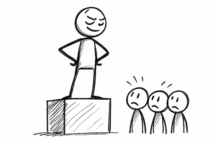 Простыми словами, комплекс превосходства — это когда внешняя уверенность и высокомерие маскируют внутренние сомнения и неуверенность в себе.