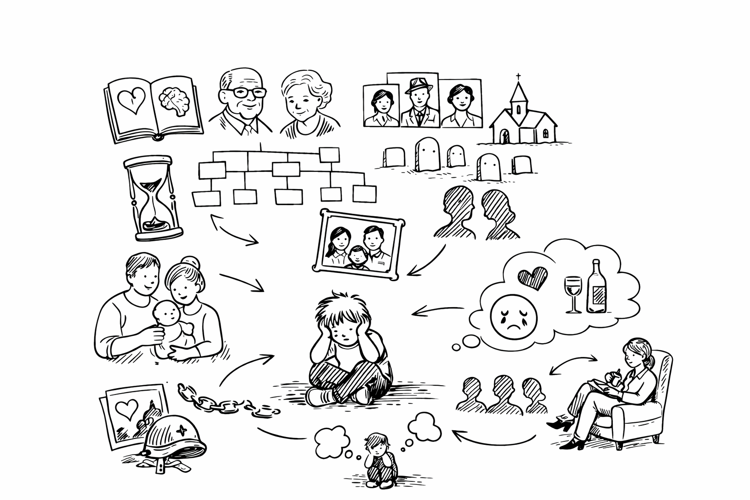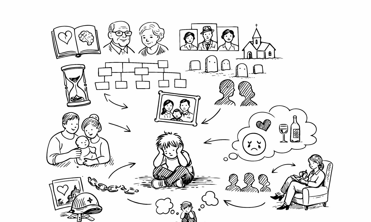 Например, при работе с тревожными или депрессивными состояниями психогенеалогия используется как вспомогательный метод: она помогает выявить, как неотрефлексированные травматические события предков (потери, войны, вынужденные разрывы) могут отражаться в эмоциональных реакциях и жизненных выборах клиента.