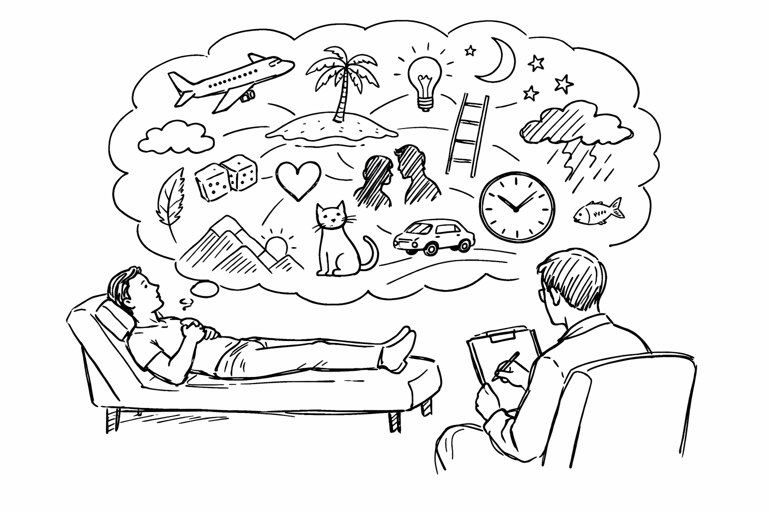 Простыми словами, свободные ассоциации — это способ говорить вслух все, что приходит в голову: мысли, образы, эмоции, воспоминания, даже если они кажутся странными, нелогичными или неуместными.