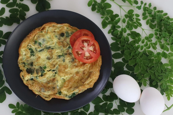 Острый омлет с листьями моринги и чили