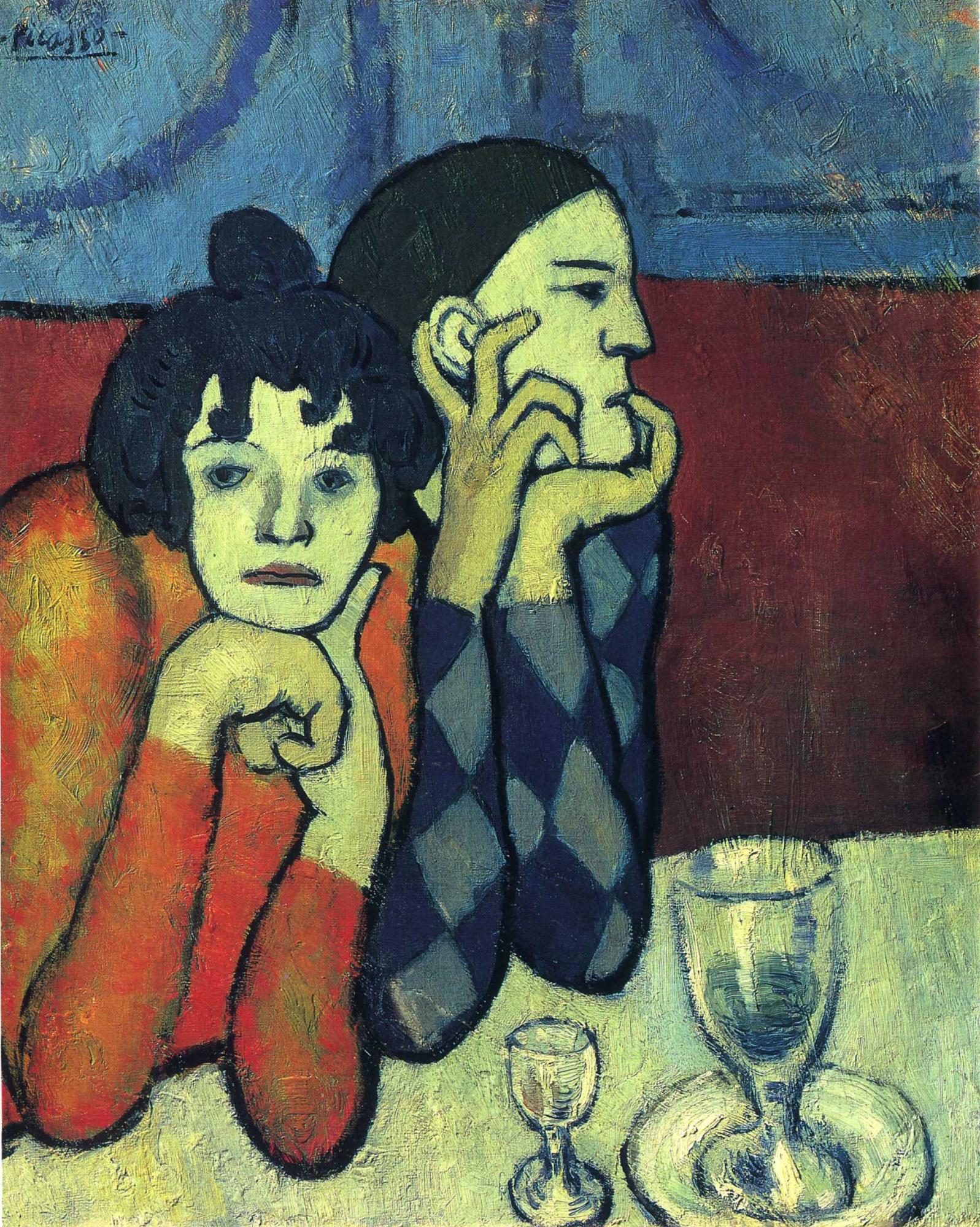 Пабло Пикассо «Арлекин и его подружка (Странствующие гимнасты)» (1901)