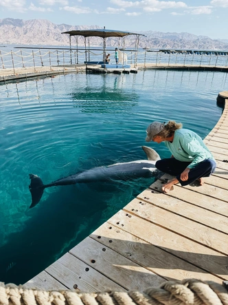 Продолжить знакомство с морскими жителями можно на Дельфиньем рифе, где, как несложно догадаться, обитают дельфины — кстати, потомки советских черноморских афалин, которых в 1960-е привезли в Израиль для сохранения популяции. Сейчас в акватории осталось только два дельфина — Нана и Никита.
